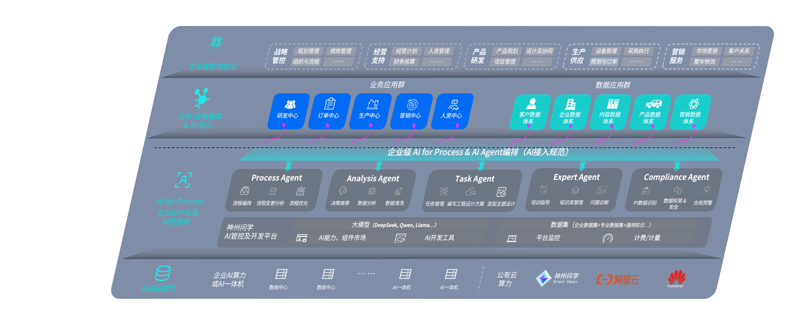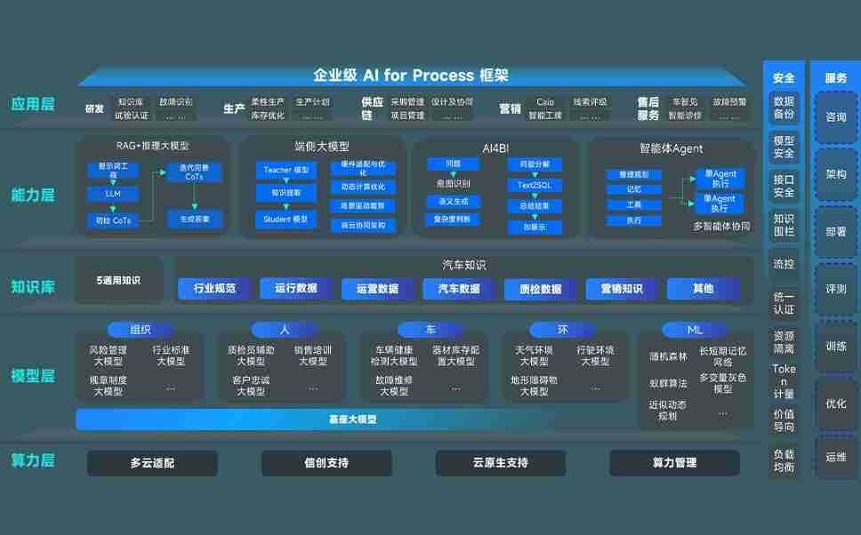 球盟会问学智车解决方案是一套基于AI技术的汽车行业智能化系统,,覆盖从底层算力到顶层AI应用的全栈方案。。方案由算力层、、模型层和应用层组成:算力层,,,方案支持多种一体机配置,,具备云端灵活部署、、、、多云适配以及动态优化计算资源的能力;模型层,,,球盟会问学平台版提供了企业级AI应用一站式构建与管理平台,,,支持基于后训练强化技术的汽车企业专属模型的训练、、、、评测和运营;应用层,,,,球盟会问学DeepSeek版提供包括超级员工、、、智能招采、、、智能营销、、、、智能客服、、AI for BI等一系列解决方案,,,可助力汽车行业实现数字化转型,,,让管理更智能、、响应更敏捷。。。